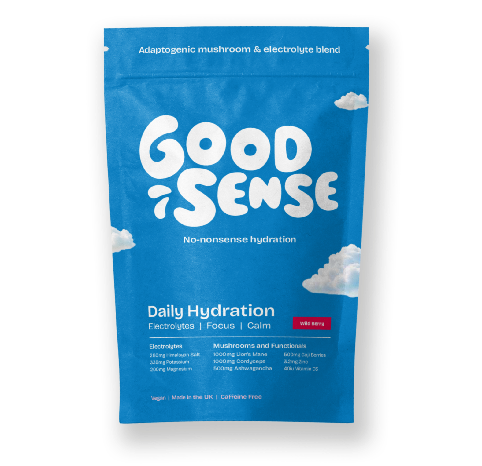 In addition to providing a clean and natural source of electrolytes, Good Hydration contains a potent adaptogenic blend of functional mushrooms and plants that help you focus, balance your mood, boost your blood flow and support your immunity.
